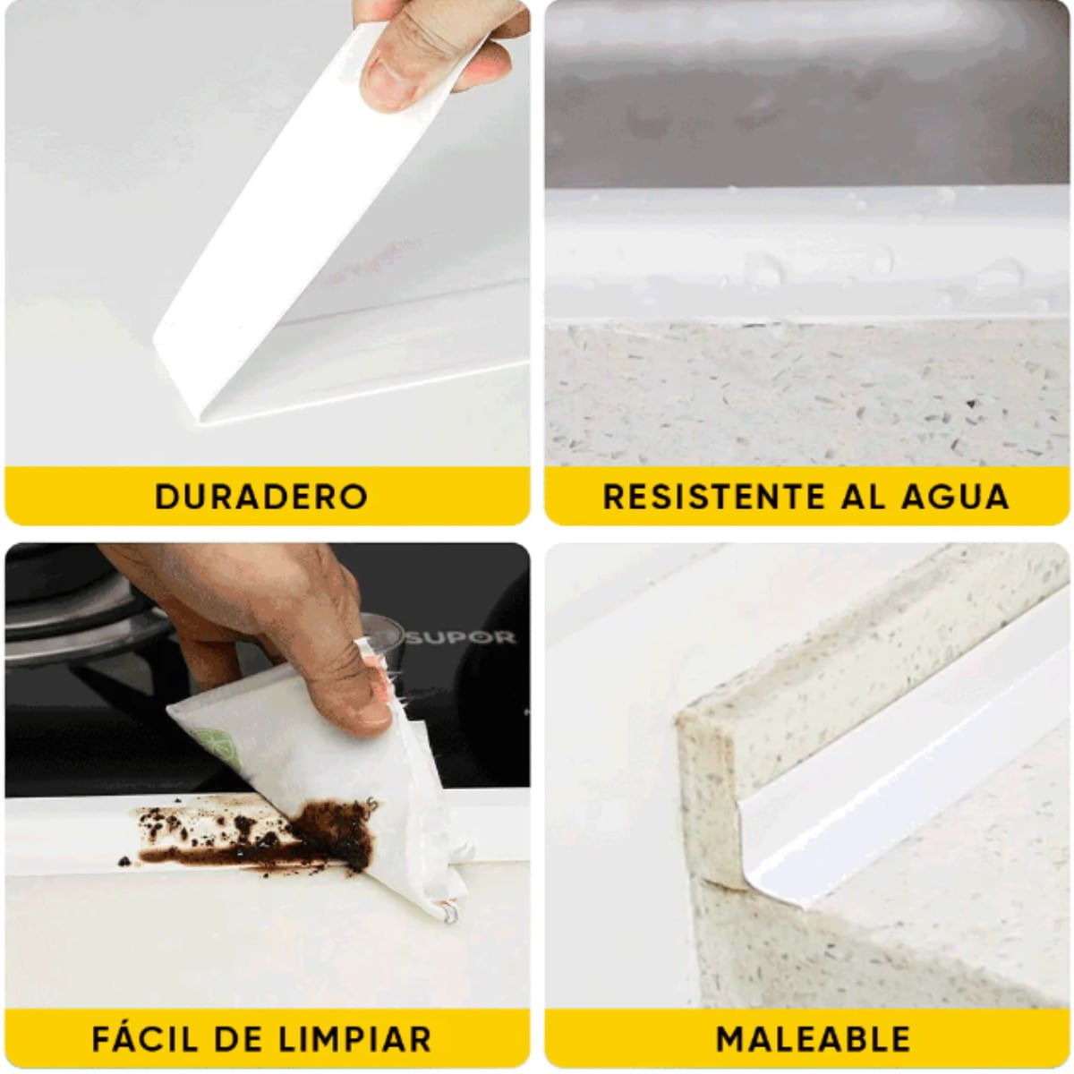 Sella eficazmente fugas y evita la formación de moho en cocina o baño. Ideal para juntas y esquinas en solo minutos.